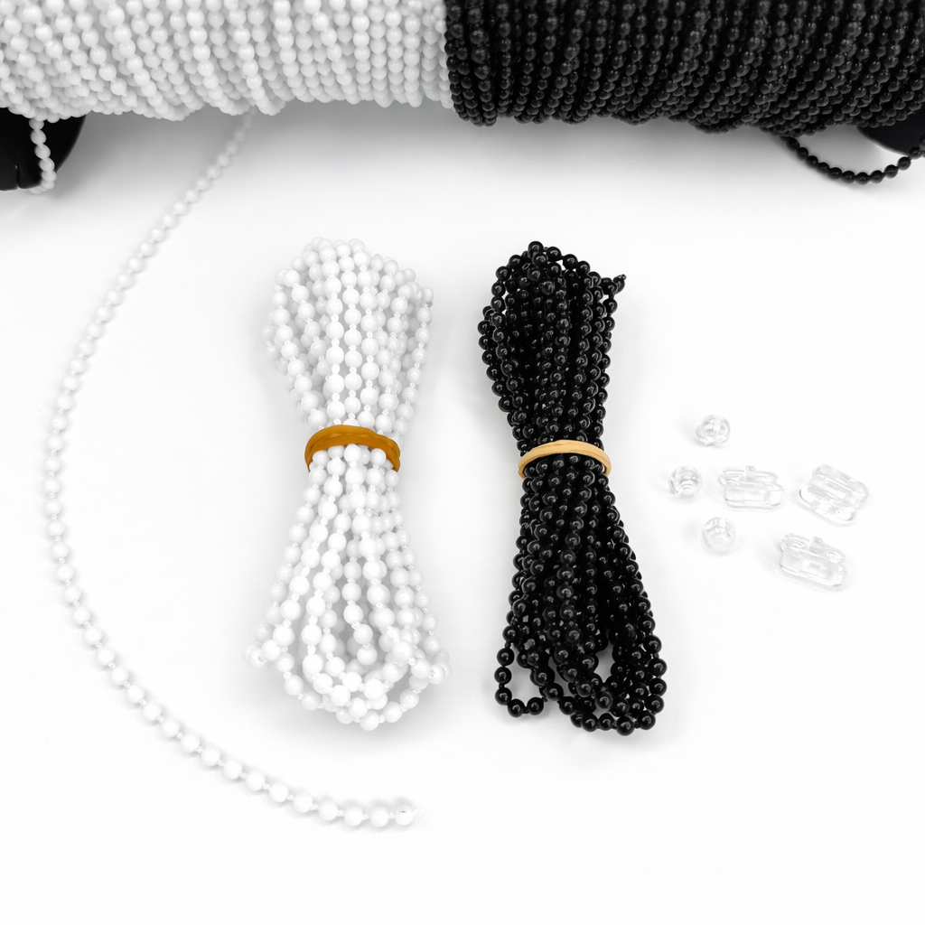 Cadena plástica de 3 metros con 3 topes, 3 uniones para cortina roller – color NEGRO
