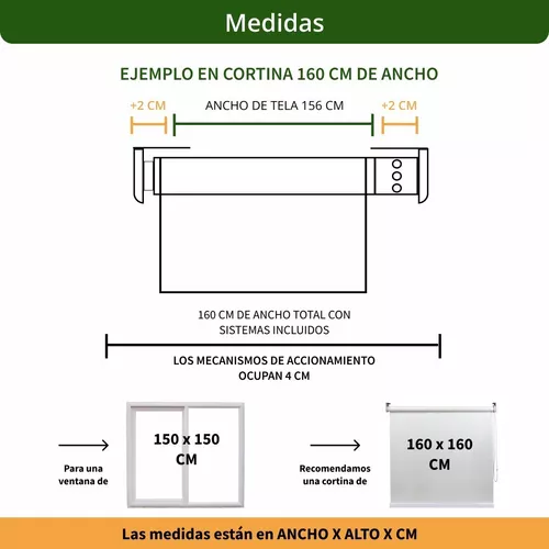 Las medidas indicadas corresponden a la medida final de la cortina completa, incluyendo soportes.